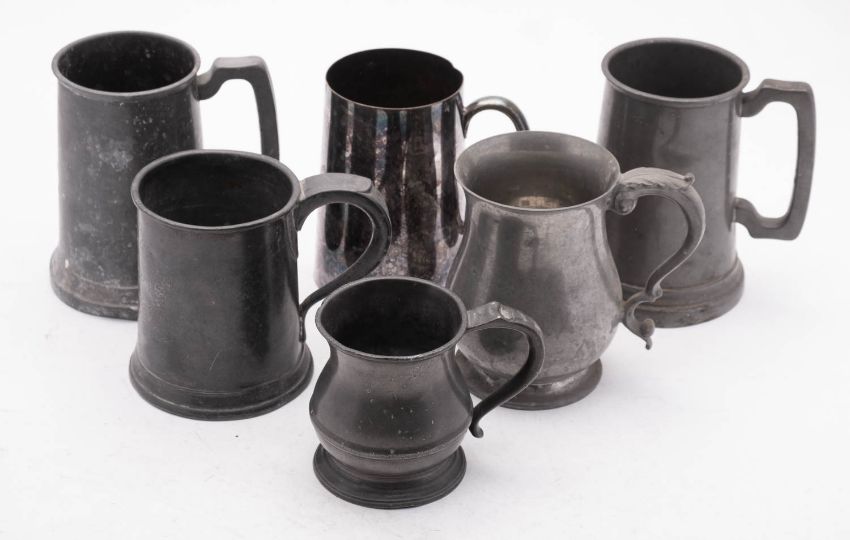 Six various tankards. Including a Victorian Mappin and Webb example etc.