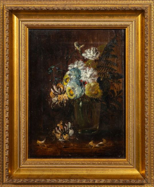 Annie Lee (19th Century) -Still life of flowers in a glass vase -Oil on canvas -29.5 x 22cm, 42.5 x 35cm framed -Signed lower right and dated 1889
