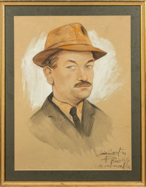 ? Haines (20th Century) -A Cubist portrait -Pen, ink and gouache -37.5 x 29.5cm, 50.5 x 41cm framed -Signed lower right.-Together with a pastel portrait of a man wearing a hat by Luis Castro, 55 x 41.5cm, 67 x 52.5cm framed,Signed lower right and inscribed 'Paris 64 Montmartre'. (2)