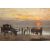 SFB (19th or 20th Century school) - Beach scene at sunset - Polychrome mixed media on paper - 33 x 50cm, 49.5 x 65cm framed - Initialled lower left.