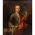 Circle of Charles d'Agar (French, 1669 - 1723) - Portrait of a young gentleman in a grey coat and red cloak holding his dog on a lead - Oil on canvas - 79.5 x 67.5cm, 91 x 79cm framed .