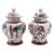 A pair of Chinese crackle ware baluster vases and covers enamelled with warriors in combat, 30cm high, concentric circle marks to base, [glue repair to one cover] together with two green ground jars. [4]