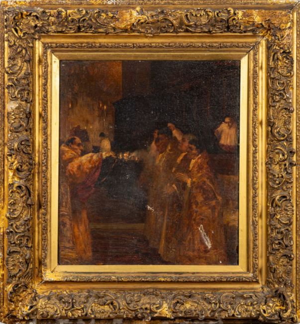 Alfred Sohn-Rethel (German, 1875-1955) -Priests celebrating mass -Oil on canvas - 41 x 36.5cm, 65 x 61cm framed - Signed and dated '95 upper right.