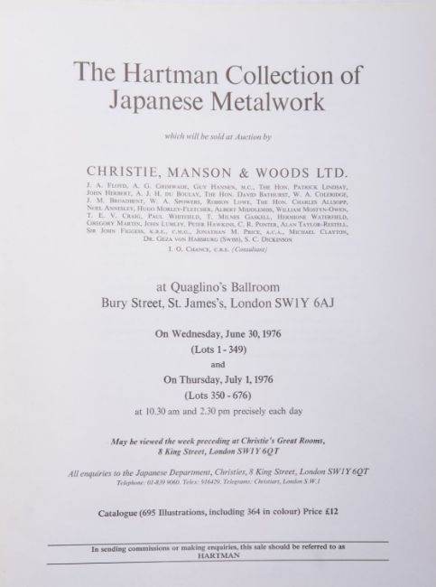 Reference auction catalogues-Chinese and Japanese porcelain & Works of Art: Sotheby Parke Bernet [Hong Kong] Ltd. 19th May 1981, 'The Edward T.Chow Collection' part three ' Ming and Ching Porcelain and Works of Art'; together with Christie's London 30th June-1st July 1976, 'The Hartman Collection of Japanese Metalwork' with results [2].