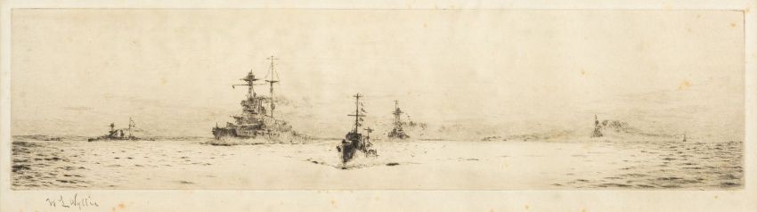 After William Lionel Wyllie (British, 1851 - 1931) - 'The Fifth Battle Squadron' - Drypoint etching - 8.5 x 35cm, 31 x 57cm - Signed in pencil W L Wyllie lower left.