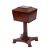 A George IV or William IV mahogany teapoy, circa 1830; the hinged cover of the sarcophagus chest opening to a fitted interior, with three lift off covers to metal caddies within, two further caddies with hinged covers and a moulded glass bowl; the lobed octagonal shaft descending through an oak leaf and acorn carved collar to a quatreform base; on turned feet; 82cm high, 43cm wide