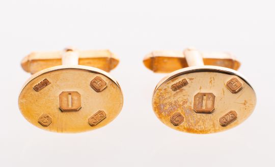 A pair of 9ct gold cufflink's, bar and toggle fitting, UK hallmark to front face, 12.5grams.