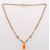 A Victorian fancy link chain with pendant drop, the fancy link chain of belcher links, elongated diamond shaped links and ornately carved ball links, bolt ring closure, bolt ring marked 9c, length approx. 44.0cm; with a pear-shaped orange stone/glass pendant drop with a silver coloured metal jump ring, length approx. 1.8cm, total gross weight 8.6grams.