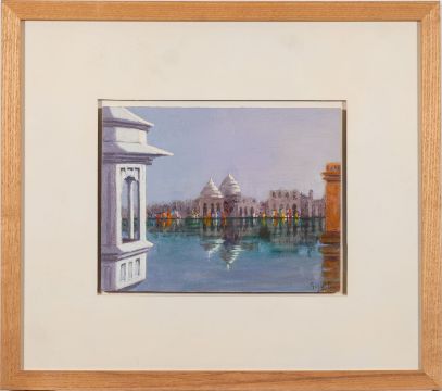 * Tim Scott Bolton (British, b 1947) - Indian street scene 'Market Orchha' Watercolour on paper - 26 x 33.5cm, 45.5 x 52cm framed - Signed 'J Scott Bolton' and dated 1992 lower left - Mark Gilbert (British school, 20th century) - 'Udaipur, Early Morning' - Oil on board - 20.5 x 27cm, 44 x 50cm framed - Signed lower right, titled and inscription on paper label verso. (2)