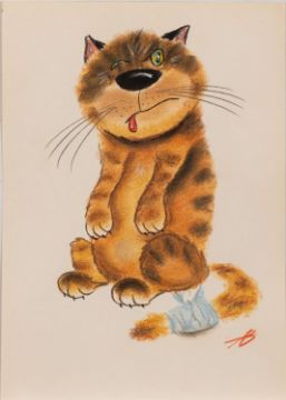 Late 20th Century Russian school - A set of ten humorous cat caricatures - Mixed media on paper - Each 42.5 x 30cm unframed -Initialled AB lower right.(10)