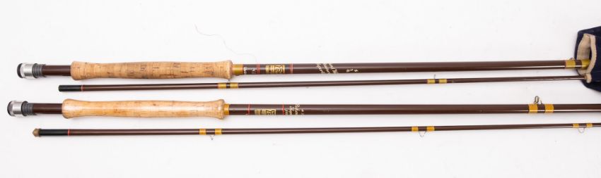 Two Hardy Bros, Alnwick 'Richard Walker Superlite' two piece graphite fly fishing rods. Both in cloth bags.