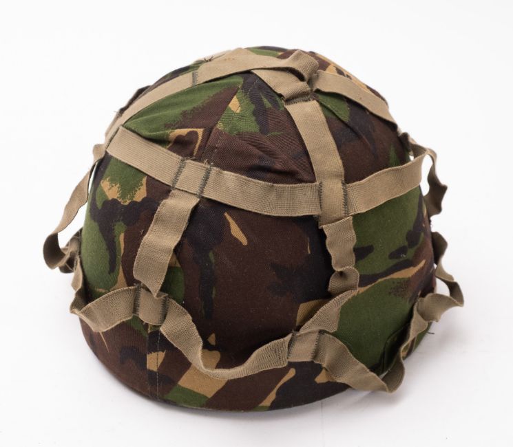 A British General Service Mk 6 helmet. Of ballistic nylon fibre with cotton covering.