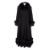 Belle Fare, a black cashmere full length coat with black fur trim to collar, sleeves and bottom, size L.