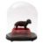 A taxidermy Black Labrador puppy (Canis familiaris) full mount on a red cushion with pierced gilt surround, on an ebony base under a glass dome, the dome 38cm high.