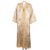 A Kaftan style dress, with gold colour embroidered hems and fastenings to the front, in a cream and gold coloured thread foliate design, chest approx 57cm, length approx 144cm.