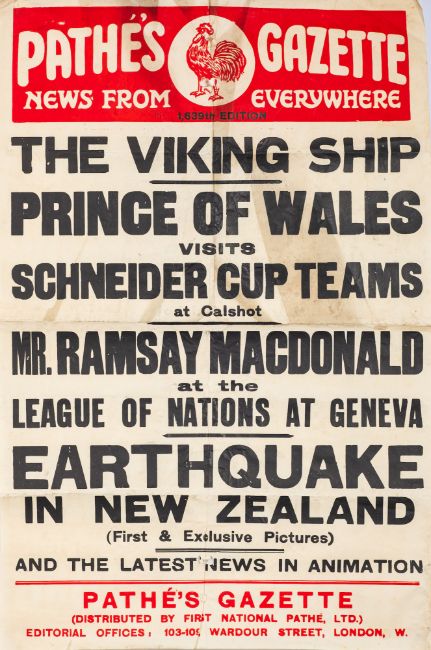 'Pathe's Gazette'. Three single sheet film posters '1,603rd Edition', ' 1,639th Edition', and '1,675th Edition', distributed by First National Pathe, London', 75 x 50xm (3) (some holes and creasing)