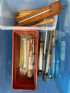 A collection of early 20th century bath and other thermometers , including three porcelain examples (formerly from a Scientific Instrument repairer's workshop)