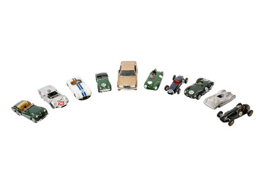 Jade Miniatures and others. A collection of 1/43rd scale built white metal racing and sports cars, including a Lotus 11 Le Mans, Cooper -Jaguar T38 , 1955 2-litre Cooper and others.