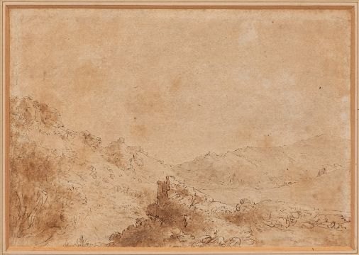 In the manner of Marianne Mordaunt (1778-1842) - Landscape scene - Ink and wash on paper - 17 x 25cm, 33 x 40cm framed - Paper label and inscription verso - 19th century school - A country church - Pencil on paper heightened in white - 17 x 26cm, 41.5 x 49.5cm framed - Unsigned - Together with five further pictures and prints (7)