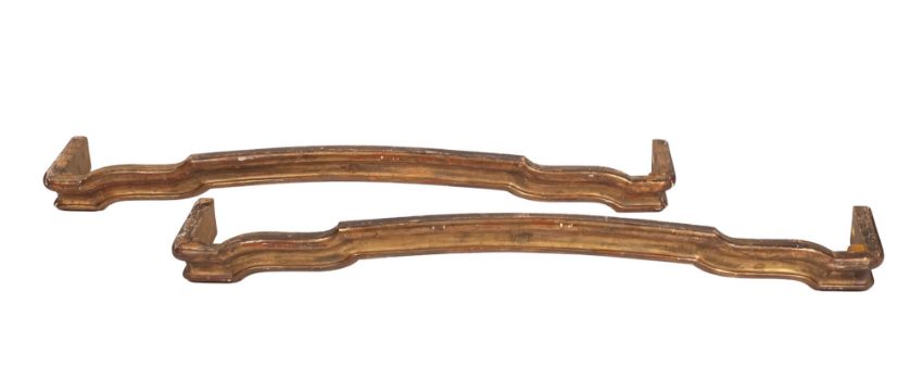 A pair of 19th century giltwood moulded pelmets of shaped domed outline, 150cm and 148cm length, 27cm. depth.
