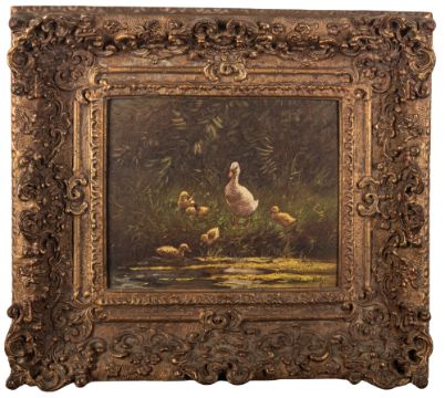 Constant Artz (French, 1870-1951) - Duck with ducklings - Oil on board - Signed lower right - 21.5 x 26cm, 40 x 45cm framed.