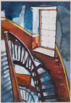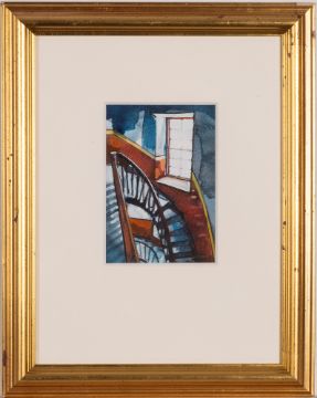 Bryan Evans (British, b 1964) - 'Through a Window, Red Close' - Watercolour on paper - 15 x 10cm, 38 x 30.5cm framed - Signed lower right, titled verso.