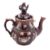 A Measham or Barge Ware pottery teapot of typical form with domed cover and teapot knop, the brown glazed body sprigged with flowers, thistles, birds and a banner impressed Mr & Mrs G. H. Palmer, Ansty, Nr. Leicester, 30cm high, late 19th century. [repair to knop]*George Palmer of Anst(e)y was a shoe and boot manufacturer.