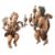 A pair of substantial Continental carved, polychrome and parcel gilt three-light wall appliques modelled as amorini, probably Austro-German, 19th century; modelled as opposing; the fitments in repousse foliate settings on scrolling stems held by the winged figures; 64cm high, 42cm wide