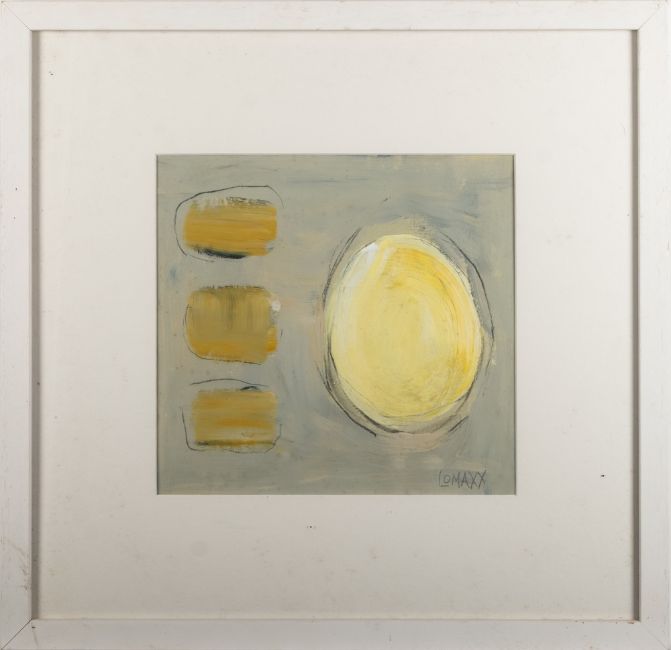 Patricia Lomax (British 1934-) - Abstract study, yellow and grey - Oil - Signed 'LOMAXX' lower right, circa 2010 - 22 x 24cm, 43.5 x 45cm framed.